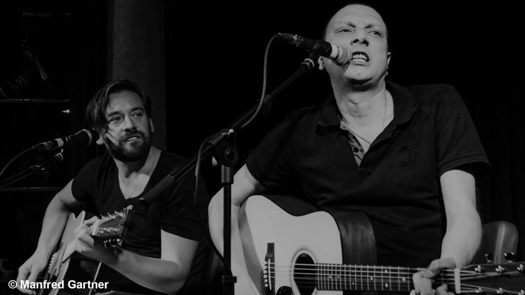 Mit viel Humor und großer Spielfreude interpretieren Hennes und Dominik Lieder von Ambros, Fendrich, Danzer und anderen Größen der Szene.