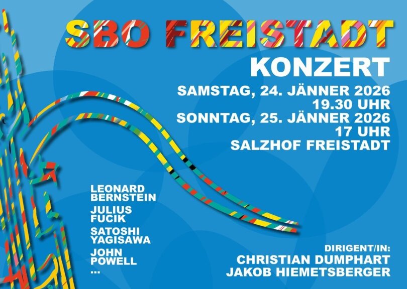 Jän 25 Sonntag, 25. Jänner 2026 Konzert SBO Freistadt Salzhof Freistadt Freistadt, Österreich #Konzert Datum & Uhrzeit Sonntag, 25. Jänner 2026 17:00 bis 20:00 Veranstaltungsort Salzhof Freistadt Salzgasse 15, 4240 Freistadt, Österreich Karte anzeigen Aktionen Event Teilen Der Ticketverkauf beginnt am 19.12.2025 Informationen Eventdetails Landesmusikschule Freistadt Veranstalter von Konzert SBO Freistadt Zur Website des Veranstalters Veranstalter kontaktieren Karte anzeigen Adresse Salzhof Freistadt Salzgasse 15, 4240 Freistadt, Österreich Wegbeschreibung Datum & Uhrzeit Sonntag, 25. Jänner 2026 17:00 bis 20:00 Veranstaltungsort Salzhof Freistadt Salzgasse 15, 4240 Freistadt, Österreich Karte anzeigen