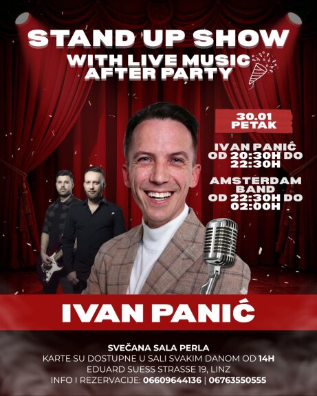 Jän 30 Freitag, 30. Jänner 2026 Veče sa Panićem Svečana sala PERLA Linz, Österreich #Theater 25 € Datum & Uhrzeit Freitag, 30. Jänner 2026 20:30 bis 22:30 Veranstaltungsort Svečana sala PERLA Eduard Sueß straße 19, 4020 Linz, Österreich Karte anzeigen Aktionen Event Teilen Tickets Informationen Eventdetails Kultiverzum Art Fabrik Veranstalter von Veče sa Panićem Zur Website des Veranstalters Veranstalter kontaktieren Karte anzeigen Adresse Svečana sala PERLA Eduard Sueß straße 19, 4020 Linz, Österreich Wegbeschreibung Datum & Uhrzeit Freitag, 30. Jänner 2026 20:30 bis 22:30 Veranstaltungsort Svečana sala PERLA Eduard Sueß straße 19, 4020 Linz, Österreich Karte anzeigen Online Tickets Parter25,00 €